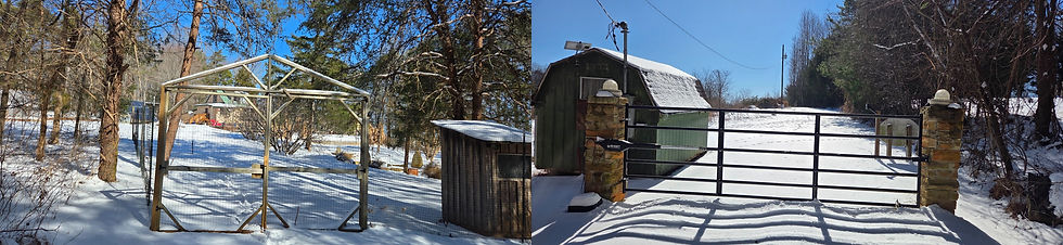 Our fence is a simple 8 foot tall black plastic mesh deer fence that bounds about half an acre of our homestead further inside the property from the gate. Inside that half acre is all but one of our outbuildings, our garden, natural pool and residence. The deer fence is a beautiful thing for several reasons. Aesthetically it pleases because you can barely see it. It does not block the view of the woods, convey unfriendliness or a paranoid mentality. Despite its airiness, it is tough. I have seen a deer run full tilt into one of these deer fences and bounce off without hurting the fence or the deer. If properly constructed, with a tight wire at the top and bottom, supported interstitially by metal fence posts and more substantial corner posts, it will last indefinitely. If covered at the bottom with galvanized wire mesh, it will be impenetrable to small creatures. Few cats will try to scale it and dogs cannot come in or out. It will contain chickens, and, if enough space is enclosed, you won’t have to feed them. If you take care of someone with dementia like we have, it will keep them in. If you have dogs, it provides a large space to roam and a dependable early warning system. It is less expensive to install than any other kind of physical barrier. I installed 1000 feet with a worker and built 3 gates for about $3500 in 2019. By keeping an eye on dead trees around it I have never had to repair it.